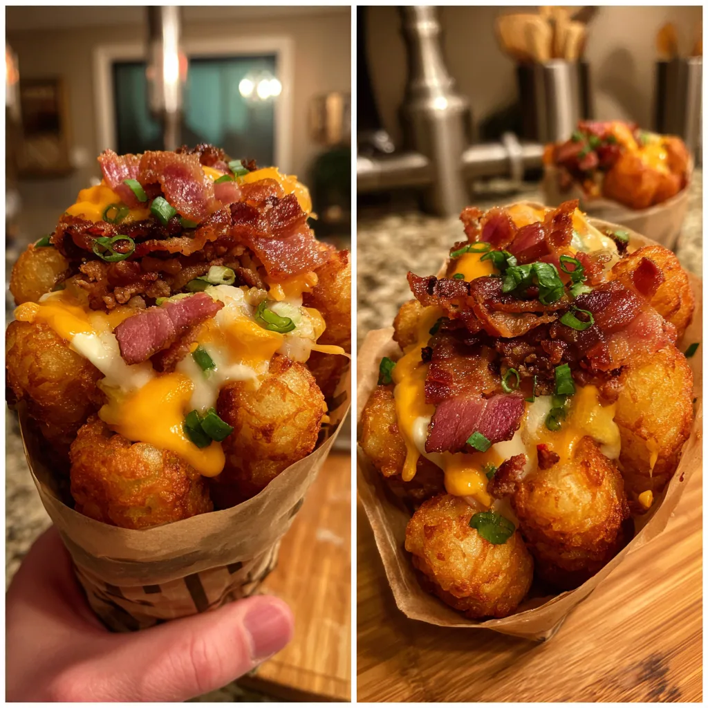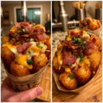 Bacon Cheeseburger Stuffed Tater Tot Cones – Crispy, Cheesy, and Crowd-Pleasing