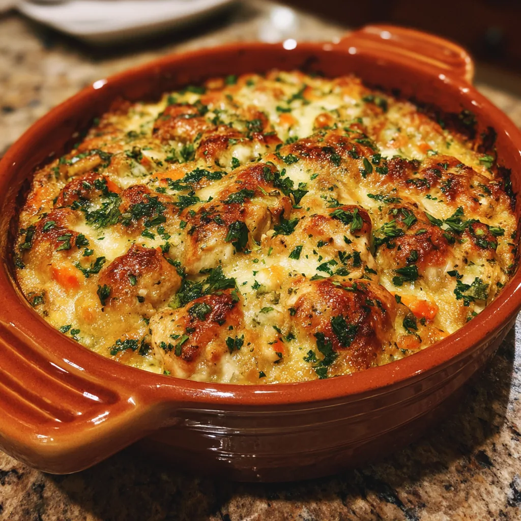 CRUSTLESS HERB CHICKEN & VEGGIE CHEESE CASSEROLE – A COMFORTING, LOW-FUSS FAMILY FAVORITE