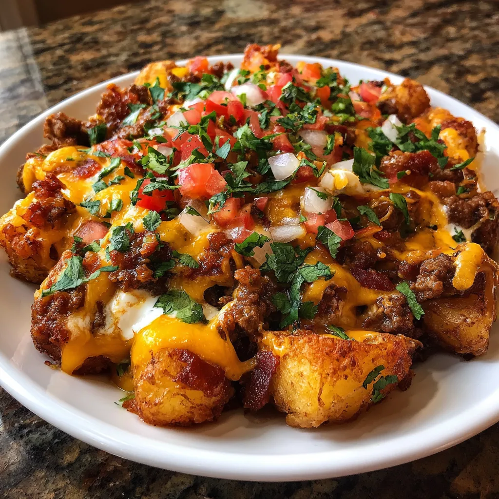 A bold and comforting dish featuring tender roasted potatoes tossed with taco seasoning and smothered in melted cheese—perfect as a side or hearty main.