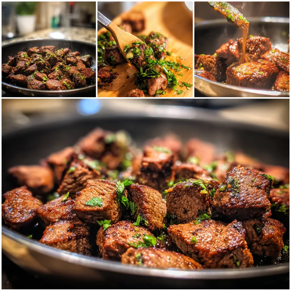A small amount of butter at the end adds richness and a glossy finish to the steak bites.
