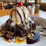 Double chocolate brownie sundae is the ultimate dessert for true chocolate lovers. Rich, fudgy brownies paired with creamy ice cream and layers of chocolatey toppings create a dessert that feels indulgent, comforting, and celebratory all at once. I usually make this when I want a guaranteed crowd-pleaser or when a regular dessert just will not do. The contrast between warm brownies and cold ice cream is what makes this sundae so irresistible. Adding extra chocolate sauce and chocolate chips takes it to another level, making every bite deeply satisfying. This dessert is simple to assemble yet feels luxurious, making it perfect for special occasions, weekend treats, or anytime you want a restaurant-style dessert at home.