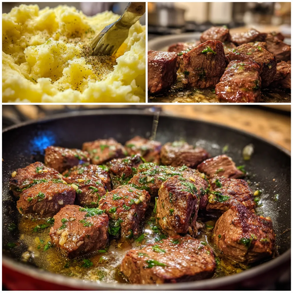 This dish is rich, filling, and deeply satisfying. The steak bites are tender and flavorful, the mashed potatoes are creamy and comforting, and the garlic butter sauce brings everything together. It cooks quickly, uses simple ingredients, and feels elevated while remaining approachable. Perfect for meat lovers and comfort-food fans alike, this recipe delivers dependable results every time.