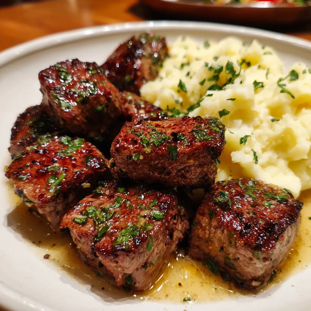 Garlic Butter Steak Bites with Mashed Potatoes is the kind of meal that delivers restaurant-quality comfort with surprisingly simple preparation. Juicy, pan-seared steak bites coated in rich garlic butter pair perfectly with smooth, creamy mashed potatoes, creating a dish that feels indulgent yet familiar. What I enjoy most about this recipe is how quickly it comes together without sacrificing flavor. When I first made it, I used a hot skillet and resisted the urge to stir too often, which resulted in beautifully browned steak pieces with incredible depth. The garlic butter seeps into the meat and complements the potatoes, tying the whole dish together. This is an ideal recipe for weeknight dinners, date nights at home, or anytime you want a satisfying, hearty meal that feels special without being complicated.
