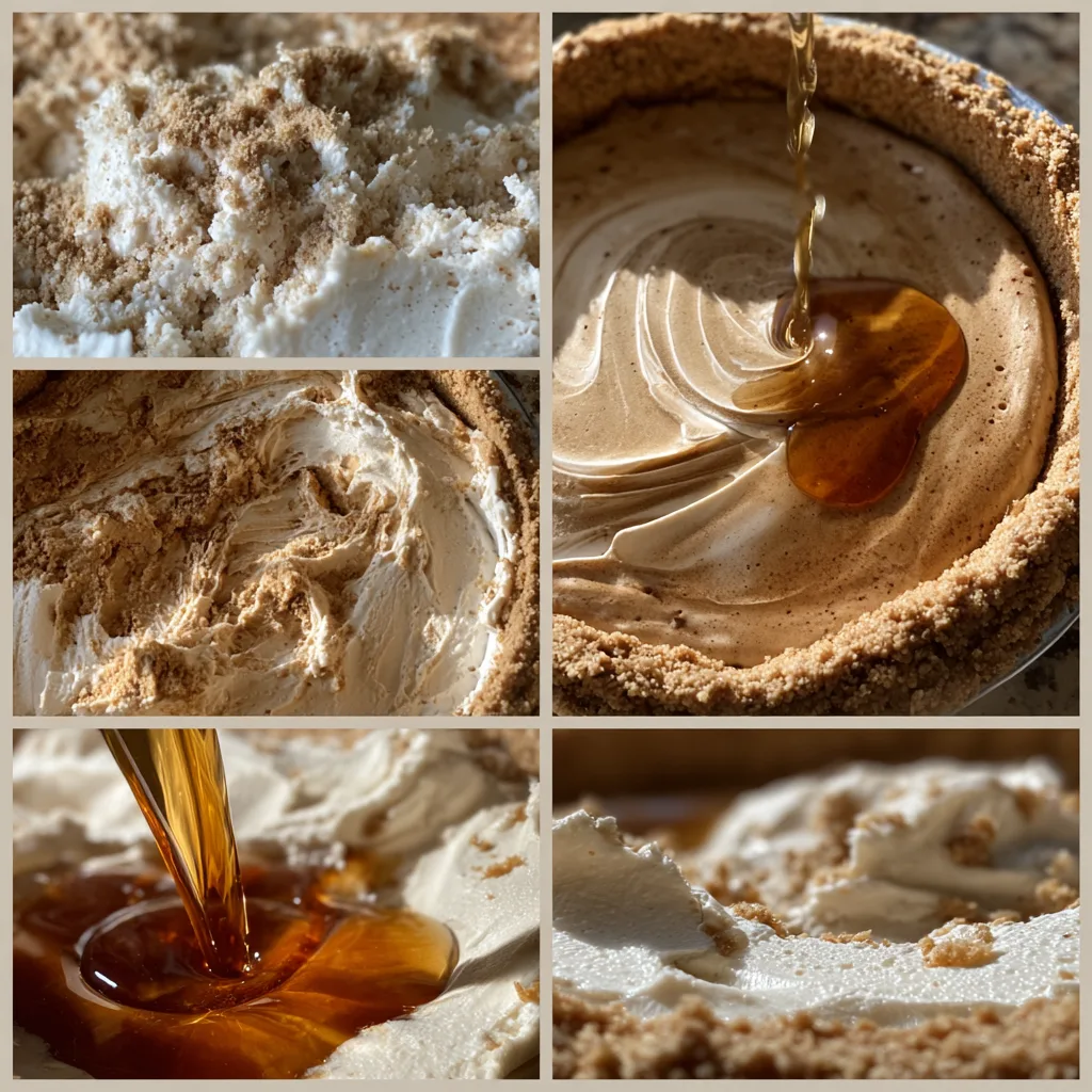 Whip the heavy cream to soft peaks and gently fold it into the filling. Spoon the mixture into the graham cracker crust and smooth the top evenly.