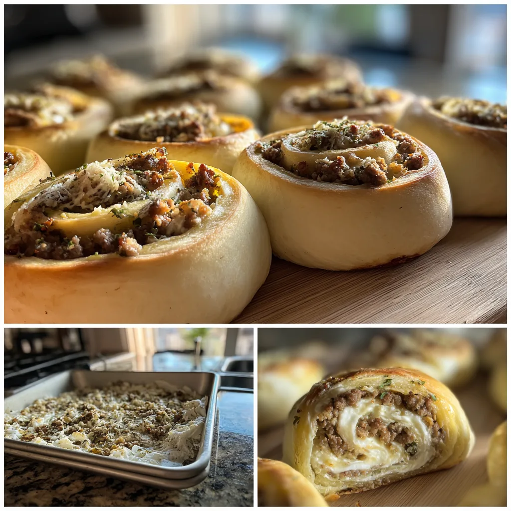 Sausage Cream Cheese Pinwheels are a savory, easy-to-make appetizer featuring a flavorful sausage and cream cheese filling wrapped in a soft dough and baked to golden perfection. Perfect for parties or as a delicious snack.