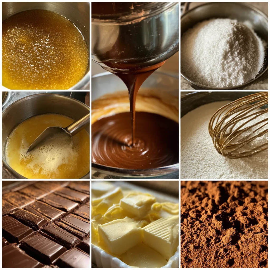 - In a saucepan, melt butter with water and cocoa powder. Bring to a boil, then remove from heat.