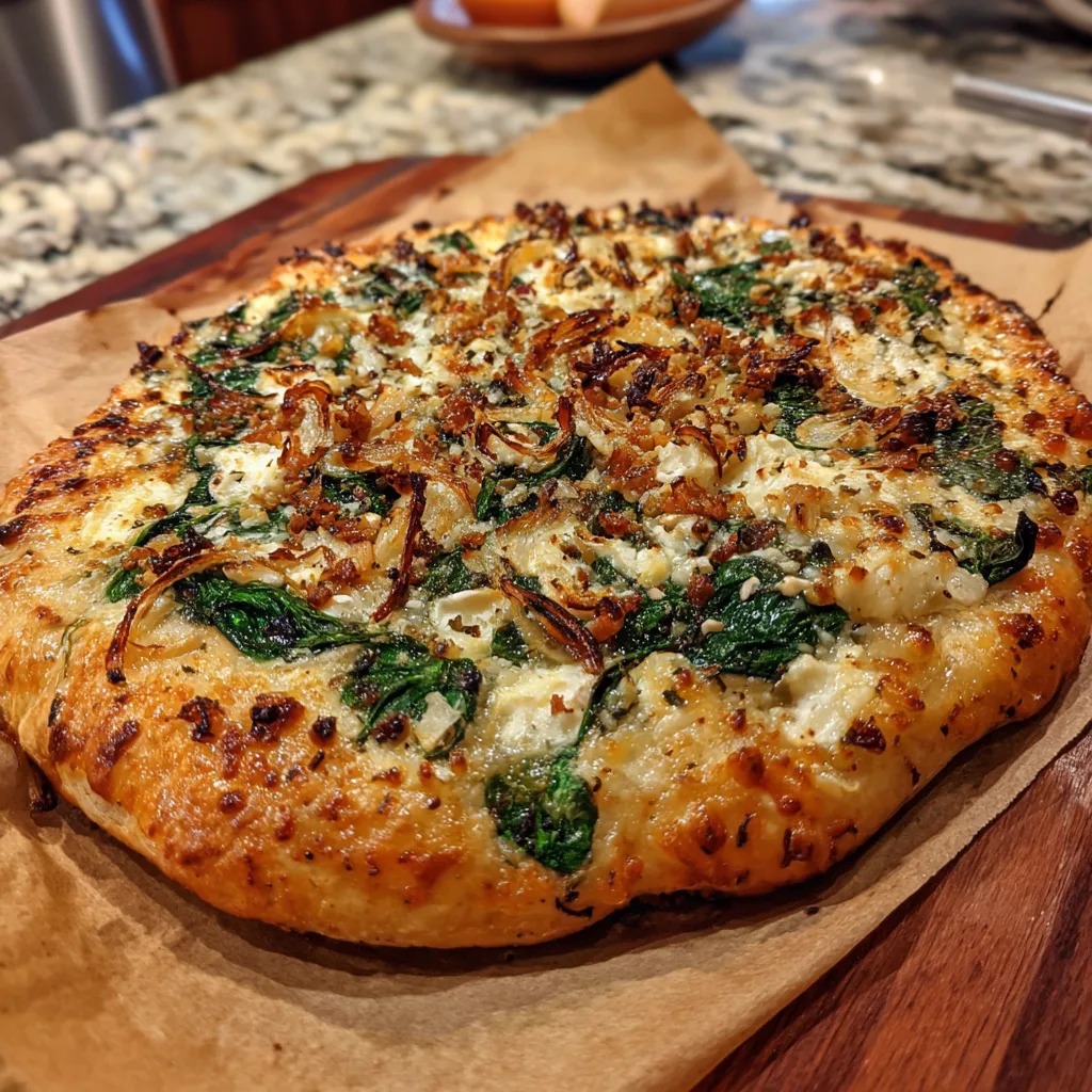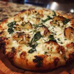 This white pizza topped with roasted garlic, fresh spinach, and a blend of cheeses proves that simple ingredients can create extraordinary flavor. Creamy, savory, and perfectly balanced, it offers a refined alternative to traditional tomato-based pizzas. Whether served for a relaxed dinner or shared with guests, this recipe delivers comfort and elegance in every slice.